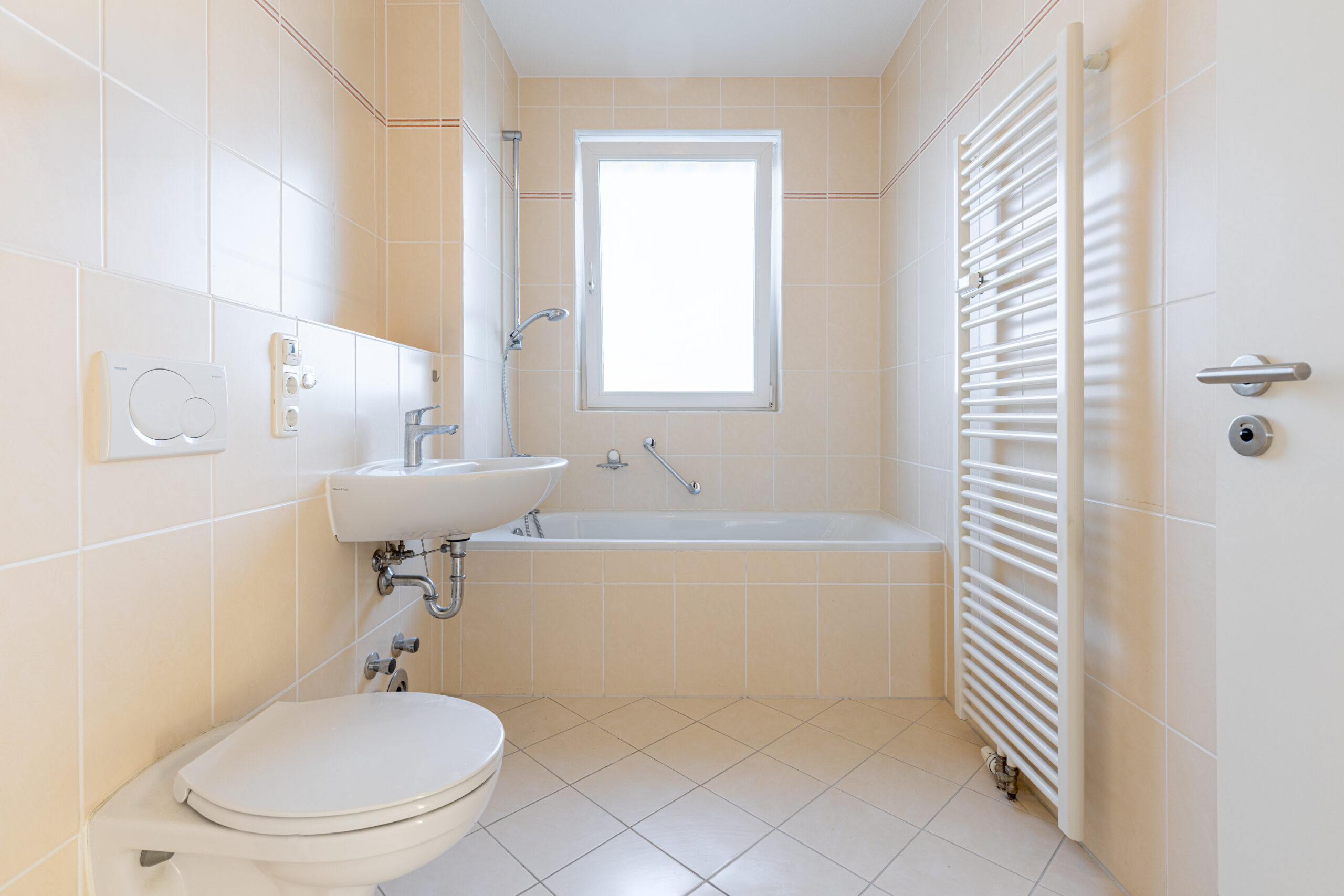 • Beige Fliesen in den Bädern