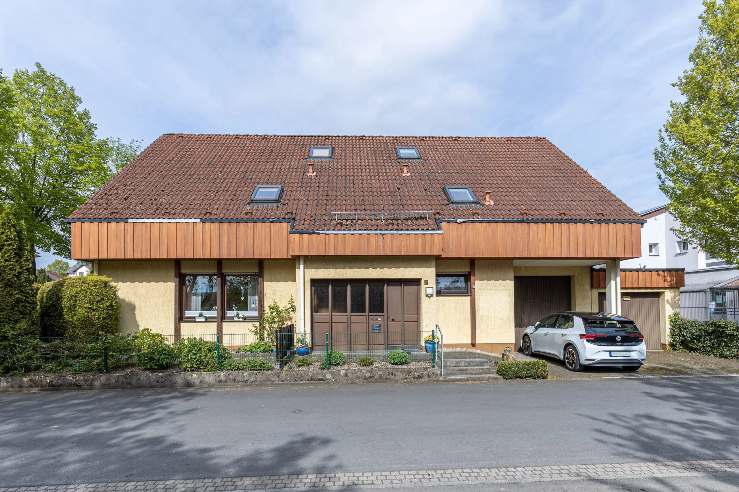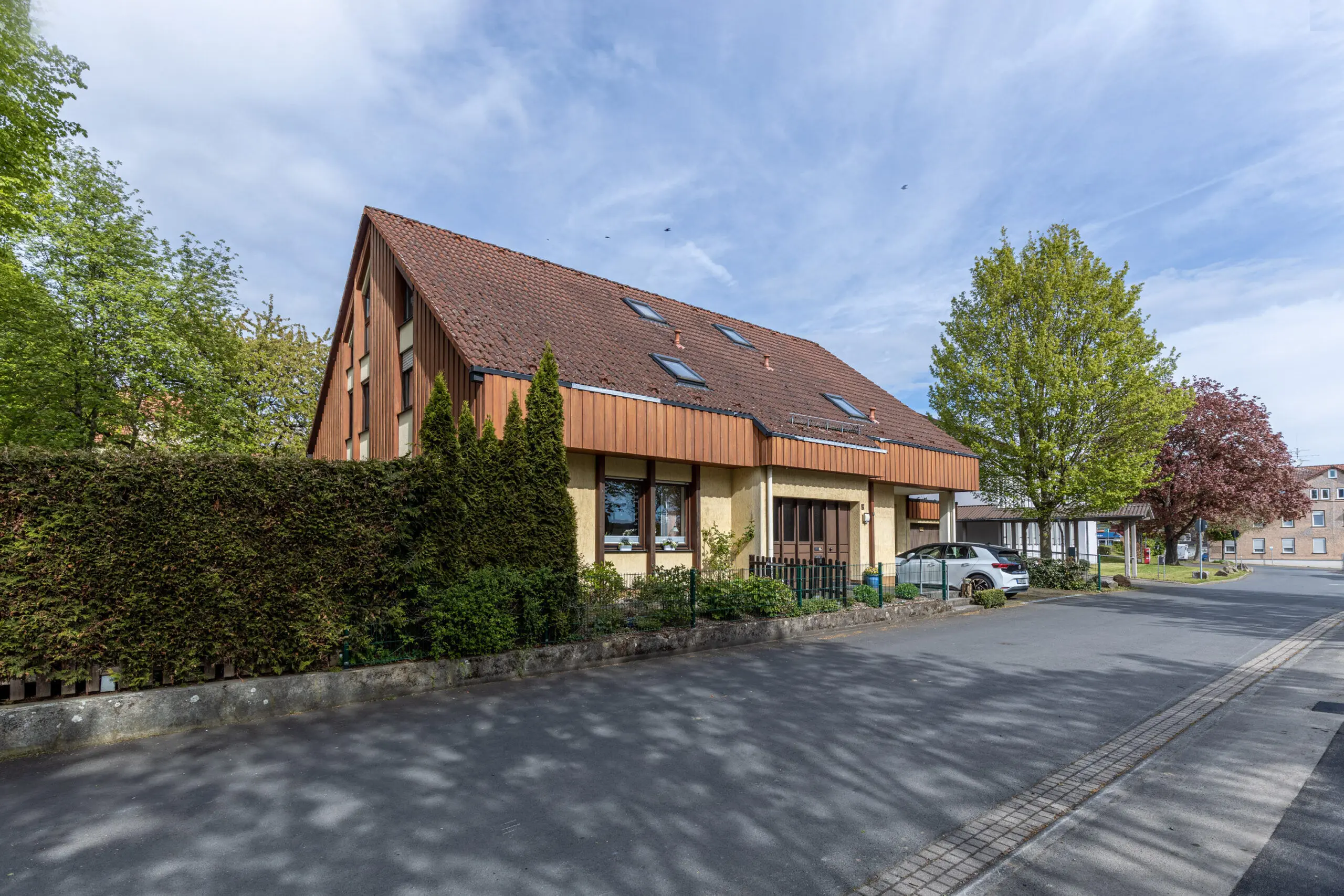 Das Mehrfamilienhaus wurde in 1988 massiv erbaut und verfügt über drei vermietete Eigentumswohnungen. Die Immobilie steht als Gesamtensemble zum Verkauf. In 2005 wurde das Erdgeschoss umfassend von einem Büro in eine Wohnung umgebaut. Diese Wohneinheit mit ca. 116m² Wohnfläche besteht aus dem geräumigen Wohnzimmer mit Ausgang auf die uneinsichtige Terrasse, zwei Schlafzimmern, der Wohnküche sowie zwei Badezimmern. Ein separater Vorrats- und Lagerraum sowie eine Garage in Übergröße sind dieser Wohneinheit zugeordnet.